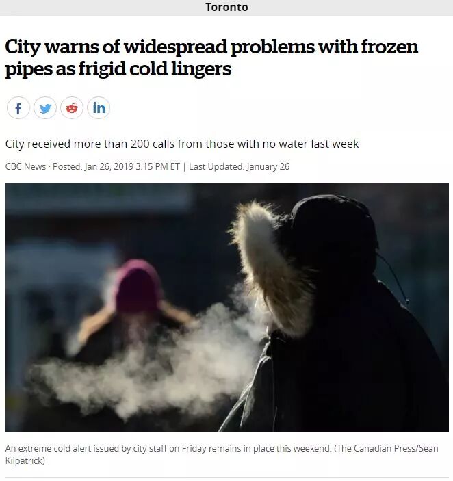 多伦多冷疯了!大量住House的居民水管被冻爆
